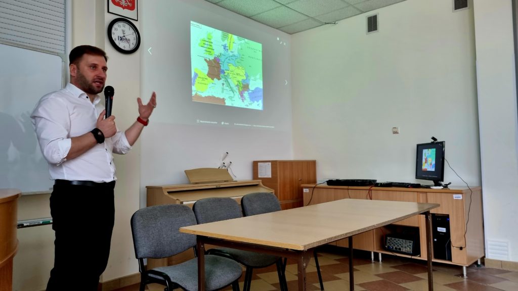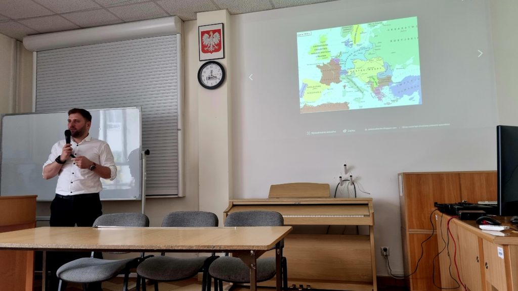 Dnia 07.11.2022 w naszej szkole odbyły się dwie prelekcje historyczne, które poświęcone były kwestii drogi Polaków do odzyskania niepodległości. Wykłady wygłosił Pan Michał Ostapiuk, reprezentujący Delegaturę IPN w Olsztynie. Wydarzenie szkolne uświetniła obecność pani wicedyrektor, Anny Płocharczyk.